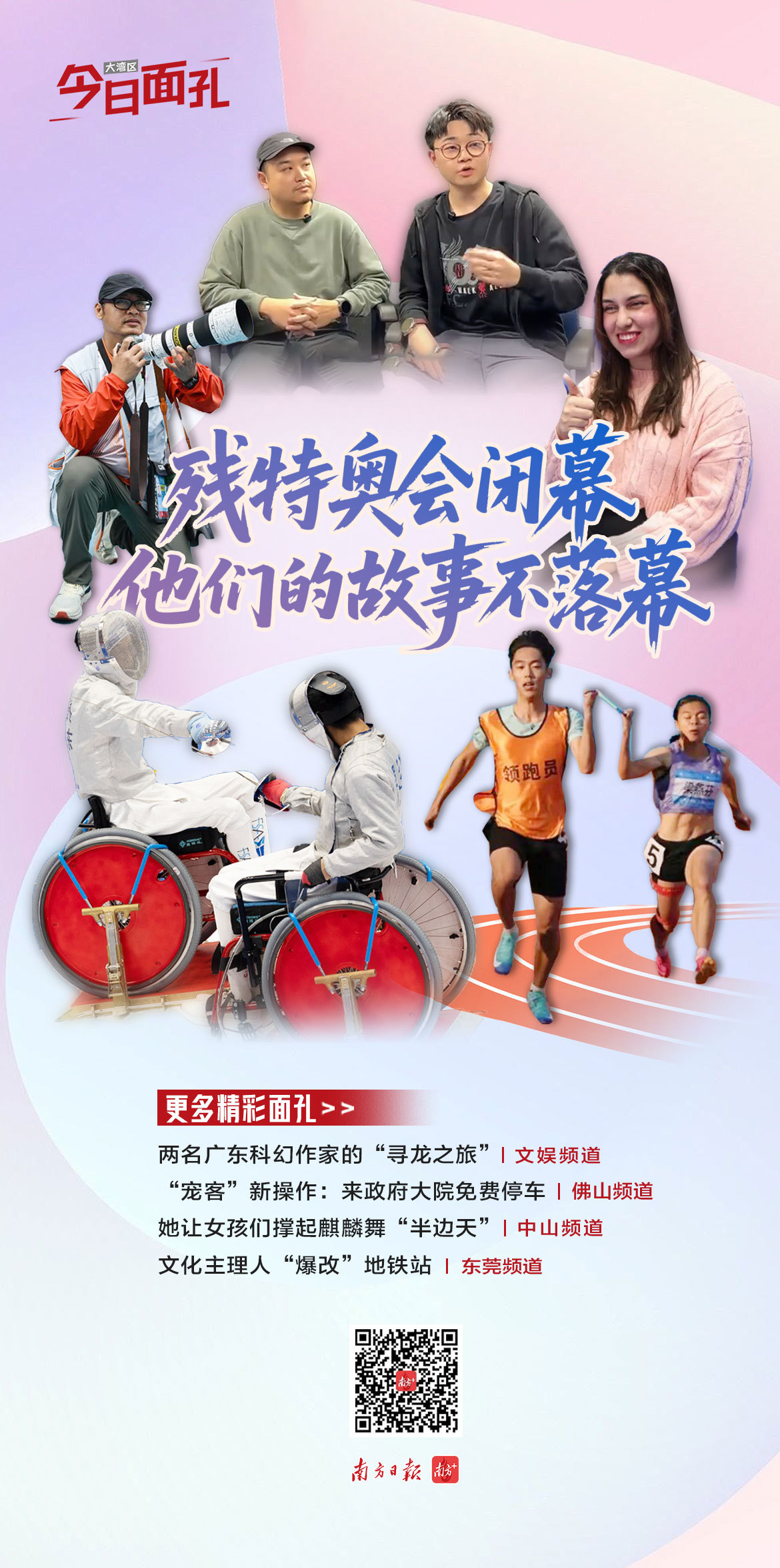 在录音棚里,直播口述影像员何家玮和李乐希为视障观众同步构建比赛画面;在观众席上,法国聋人朋友萨布丽娜专程来到东莞,为聋人女子篮球比赛的球员们,献上她远跨重洋的喝彩;还有与体育盛会擦肩而过的退役运动员潘燕飞,将专注与韧劲,从球场转向绣架,在另一个赛场上拼尽全力。